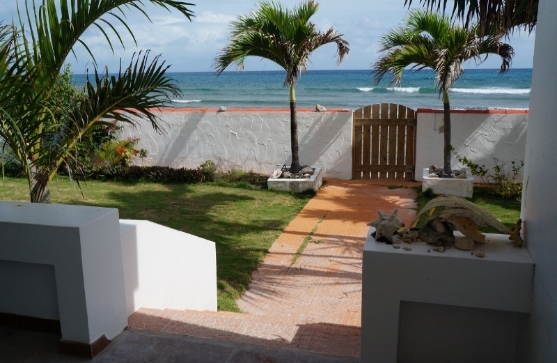 The villa features two well-appointed bedrooms, a spacious living room, full kitchen, and private outdoor areas where you can relax and enjoy the tropical surroundings and ocean breezes.